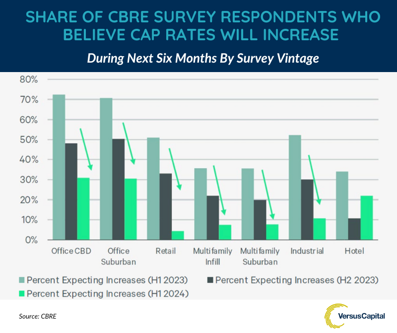 The majority of participants in CBRE’s semi-annual cap rate survey believe cap rates have peaked.